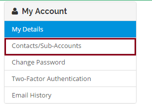 - Click on the Contacts/Sub-Accounts link on the left part of the page
